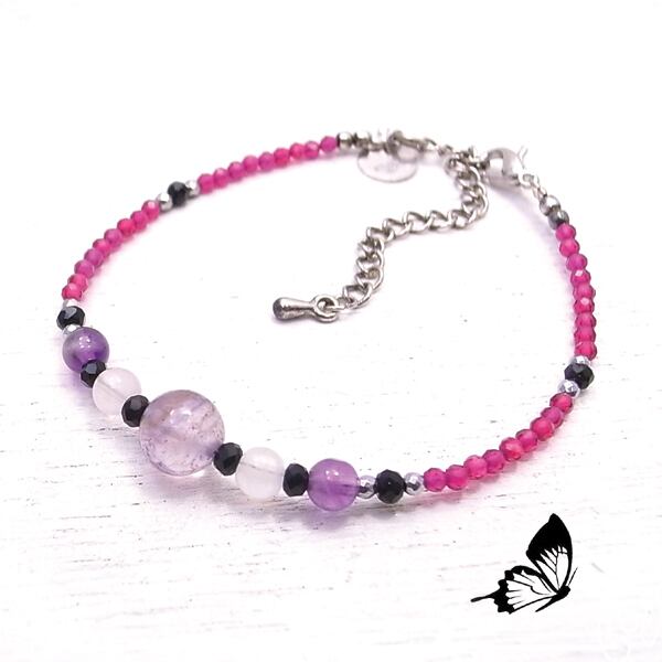 ルビーをメインにした繊細なデザインのブレスレットです。
