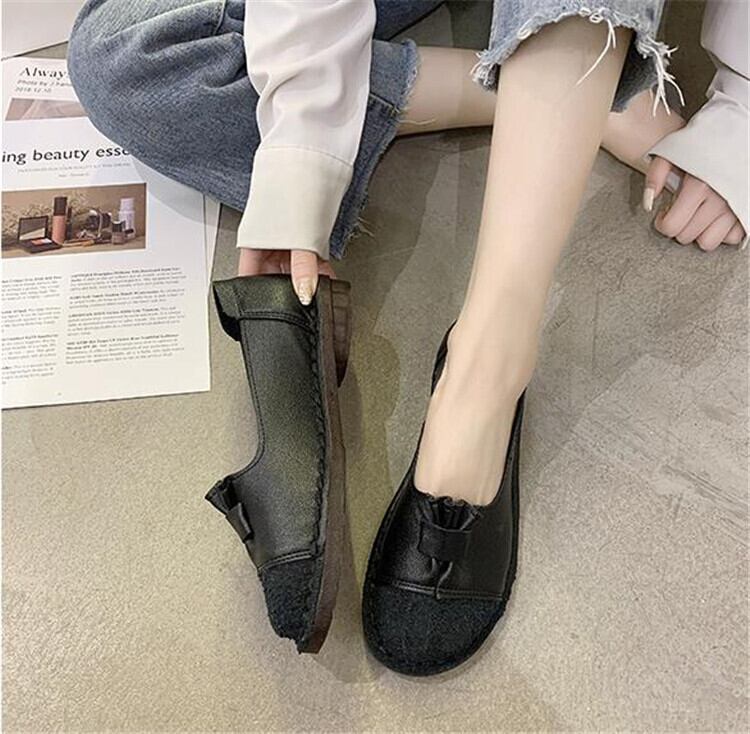 ソフトレザー エンドウ豆の靴 ワンペダル 怠惰な男 スクープシューズ フラット