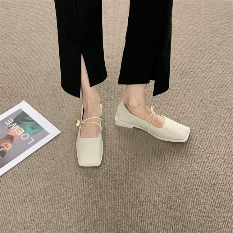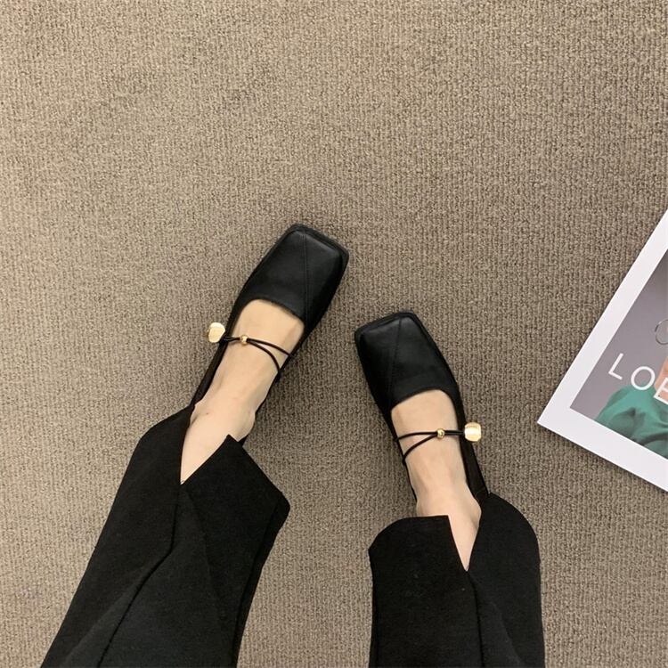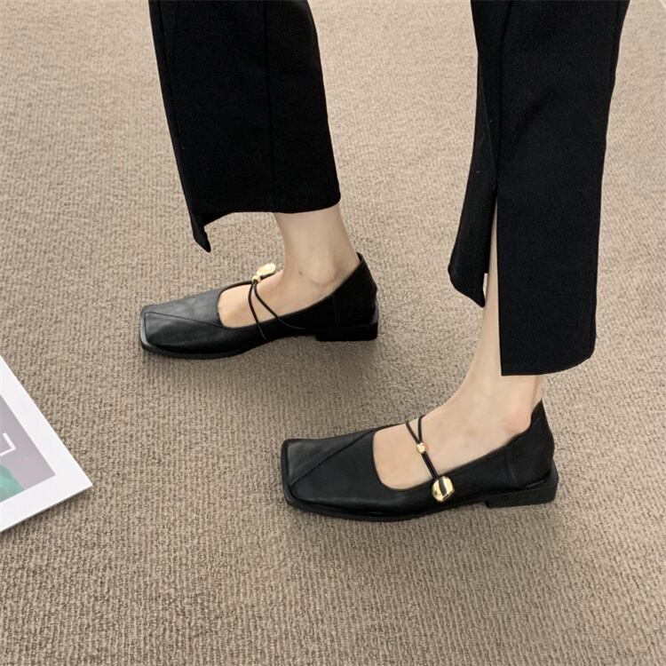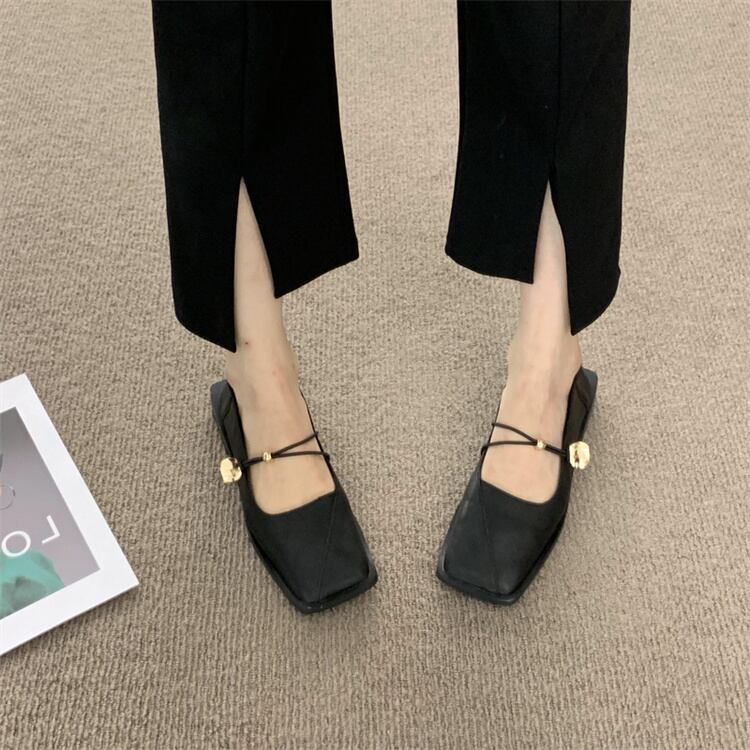 怠惰な風 上品映え パンプス スクエアトゥ メリージェーンズ レトロ シューズ フラットシューズ