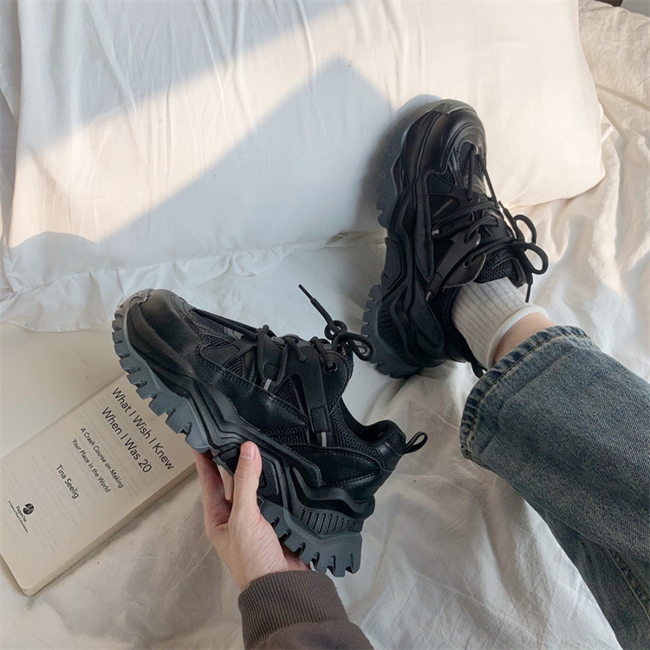 INSスタイル 脚長効果 スポーツカジュアル 白靴 足首ほっそり 厚底スニーカー