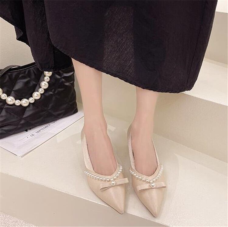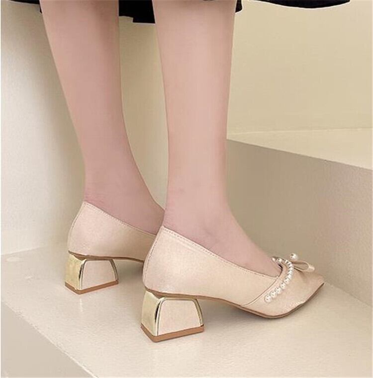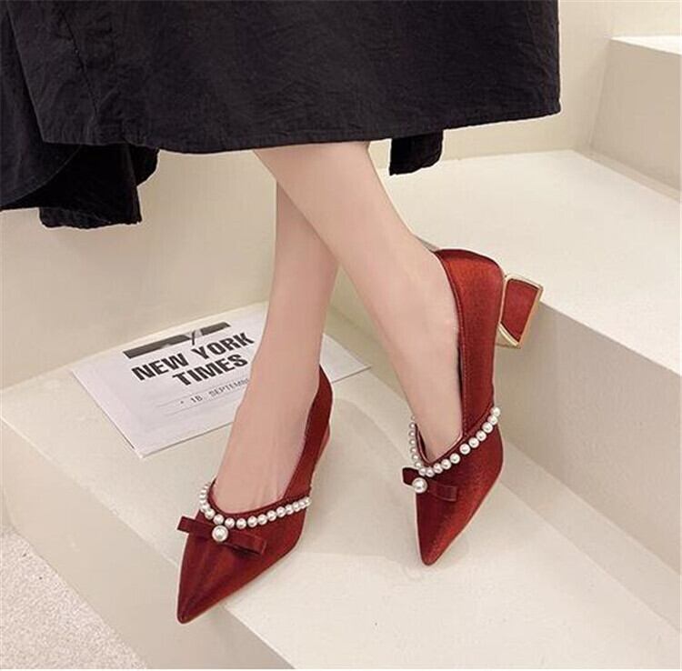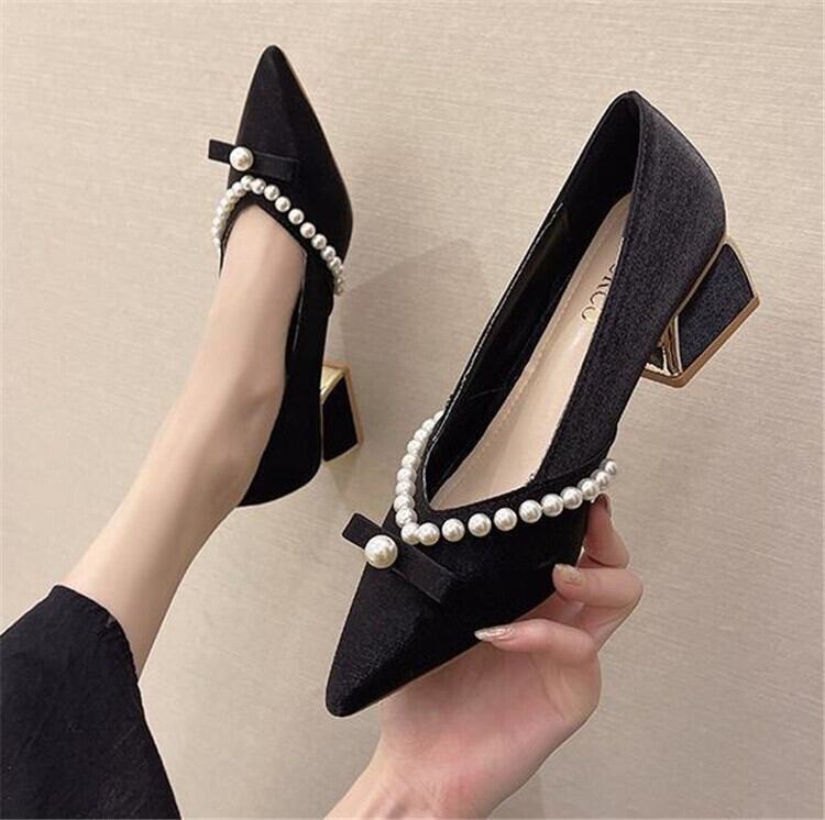シングルシューズ ポインテッドトゥ ハイヒール 厚手のヒール カジュアル