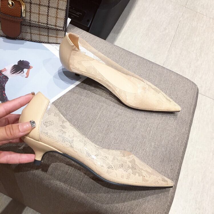 スモールヒール シングルシューズ 新作 韓国版 ポインテッドトゥ クリア
