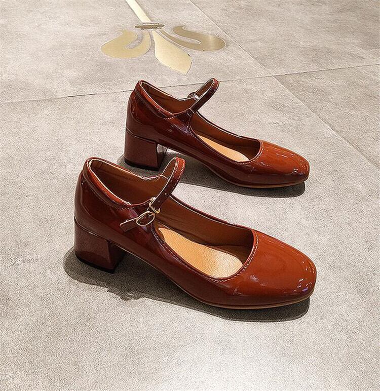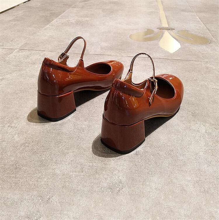 メリージェーン おばあちゃんの靴 ヴィンテージ ミッドヒール 厚いヒール