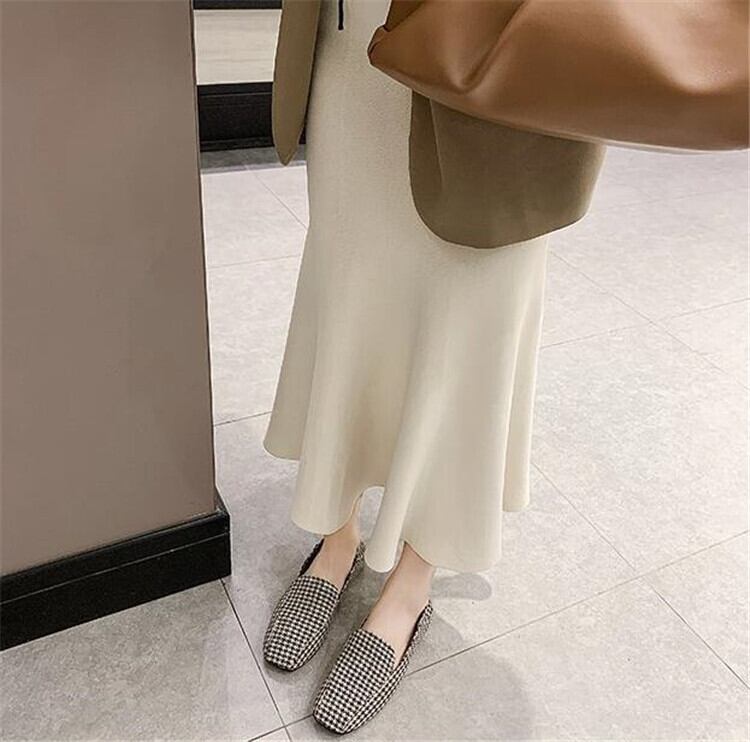 千鳥格子 カジュアル 1ペダル エンドウ豆の靴 ローファー・フラット