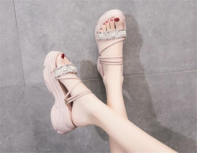 スポンジケーキ 厚い底 サンダルとスリッパ アウター着る ファッション スロープヒール 増加する