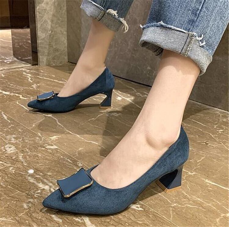 ワークシューズ ギャザリング 簡約 厚手のヒール ポインテッドトゥ シングルシューズ