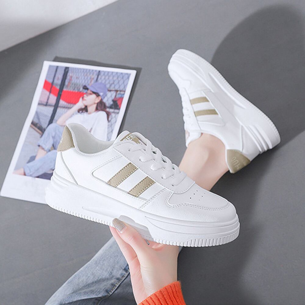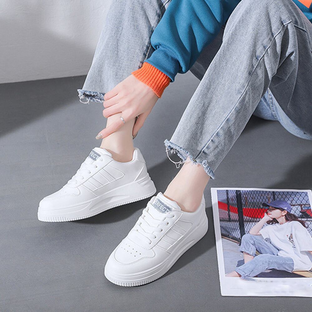カジュアル フラットシューズ 歩きやすい おしゃれ PUレザースニーカー 通勤通学美脚シューズ レースアップ靴履きやすい