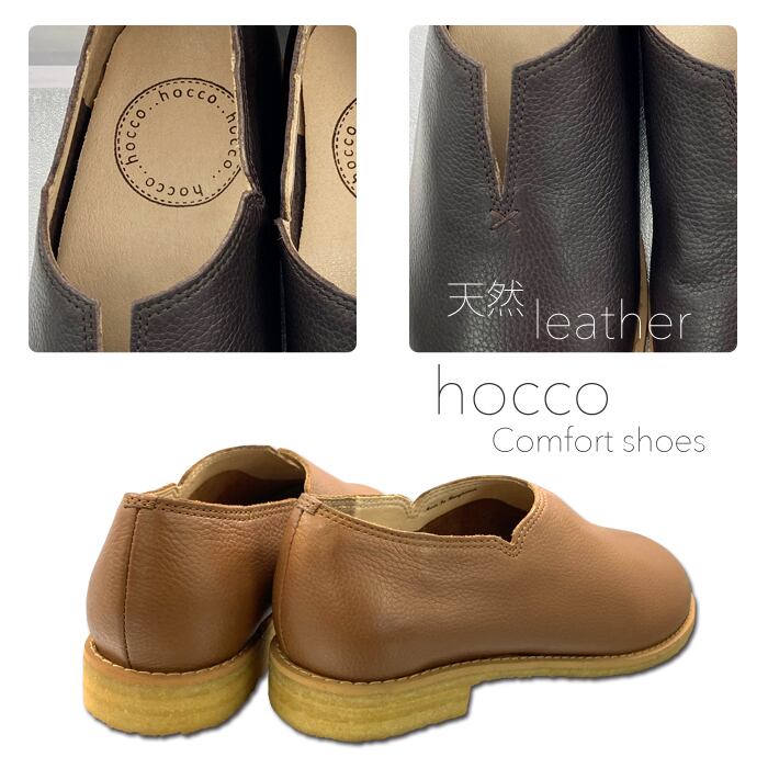 ナチュラル&リラックスカジュアルなアイテムを提案する 「hocco」オリジナルの本革シューズです。