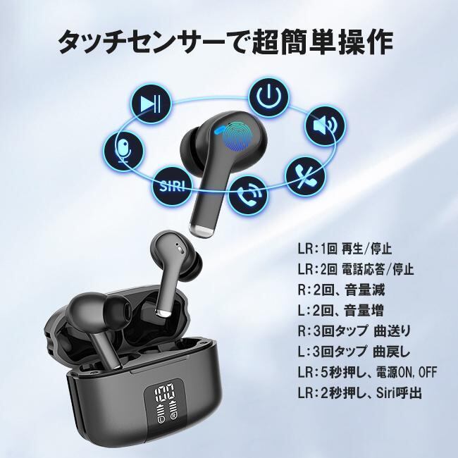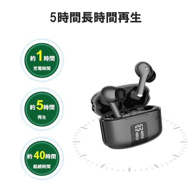 Bluetoothバージョン:5.3+EDR プロファイル:HFP/HSP/A2DP/AVRCP コーデック:AAC、SBC ノイズキャンセリング:ENC イヤホンバッテリー容量:35mAh 充電ケースバッテリー容量:230mAh 入力電圧:5V 1A 充電時間:約1時間 音楽再生時間:約4〜5時間 通話時間:約4〜5時間 スタンバイ時間:約100時間 通信距離:約10m イヤホン重さ:4g(片耳) 単体重さ:57g(充電ケース含む) 防水レベル:IPX5