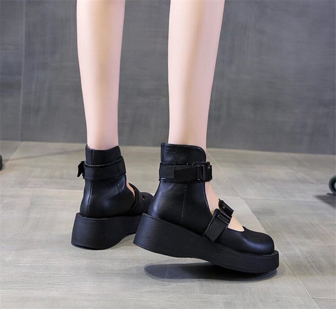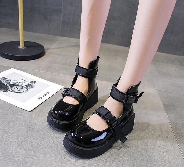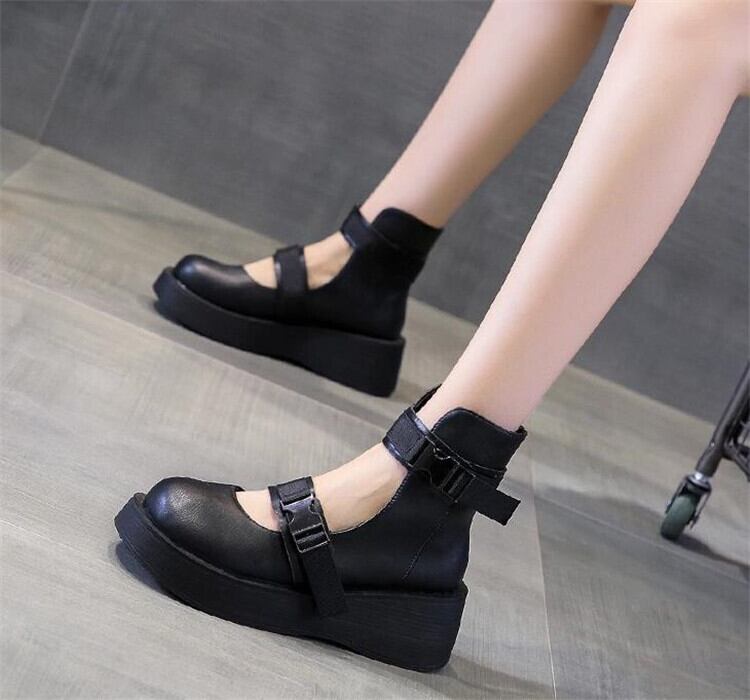 ハイトップ メタルバックル レトロ 厚底 サンダル 百掛け 包頭 ローマ メリージェーン
